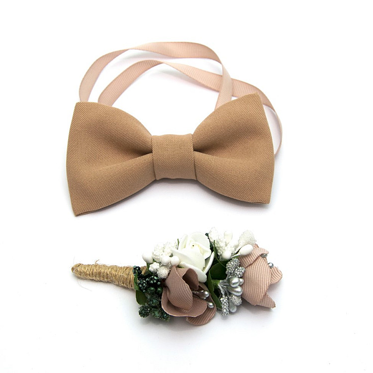 Бежевий набір Gofin 2 в 1 метелик та бутоньєрка GFO-16002