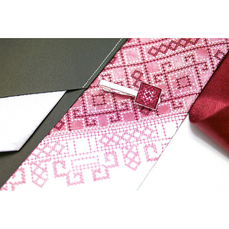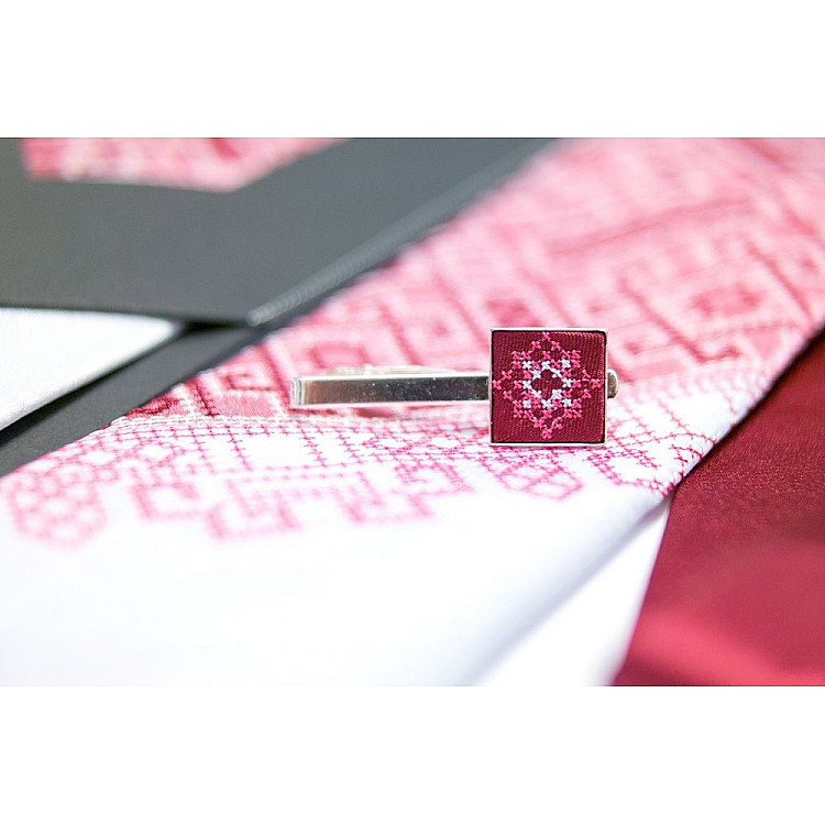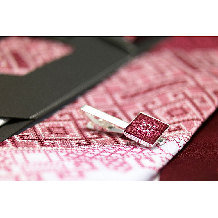 Чоловіча вишита краватка з зажимом Бордове Трiо LNTZ-4002