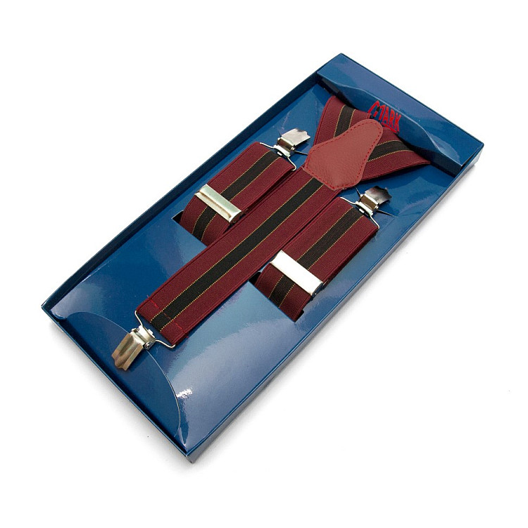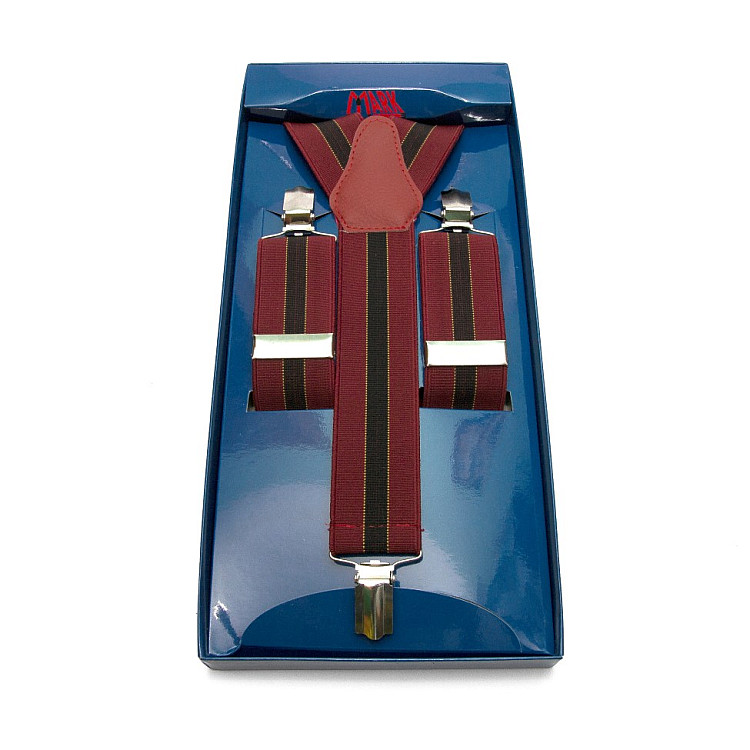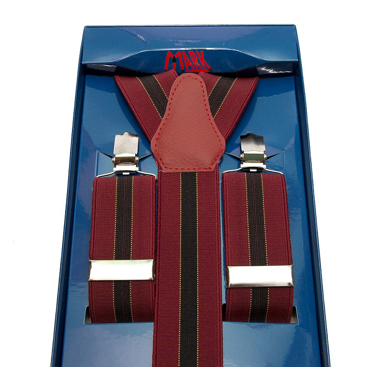 Чоловічі підтяжки Gofin Y образні бордові з чорною смужкою подарункові PU-0479