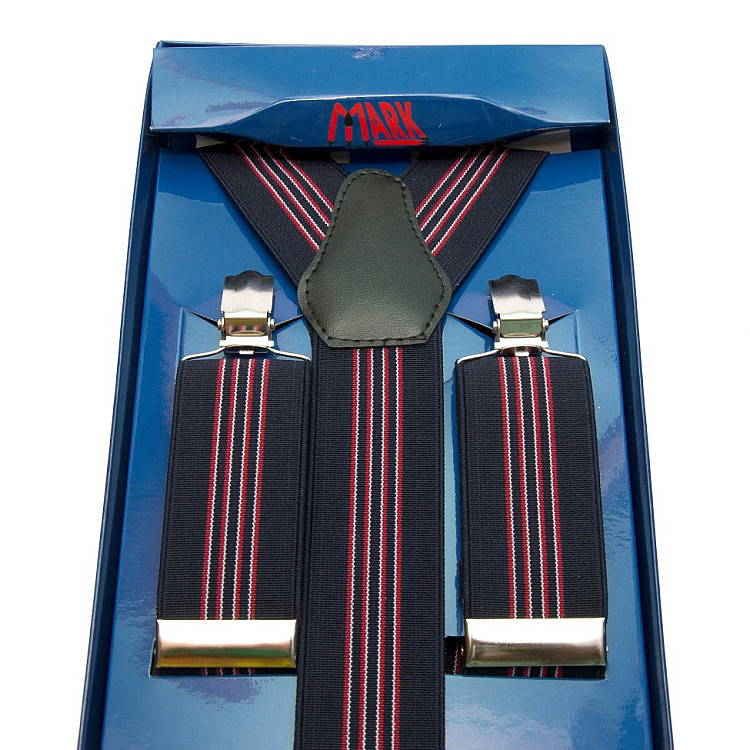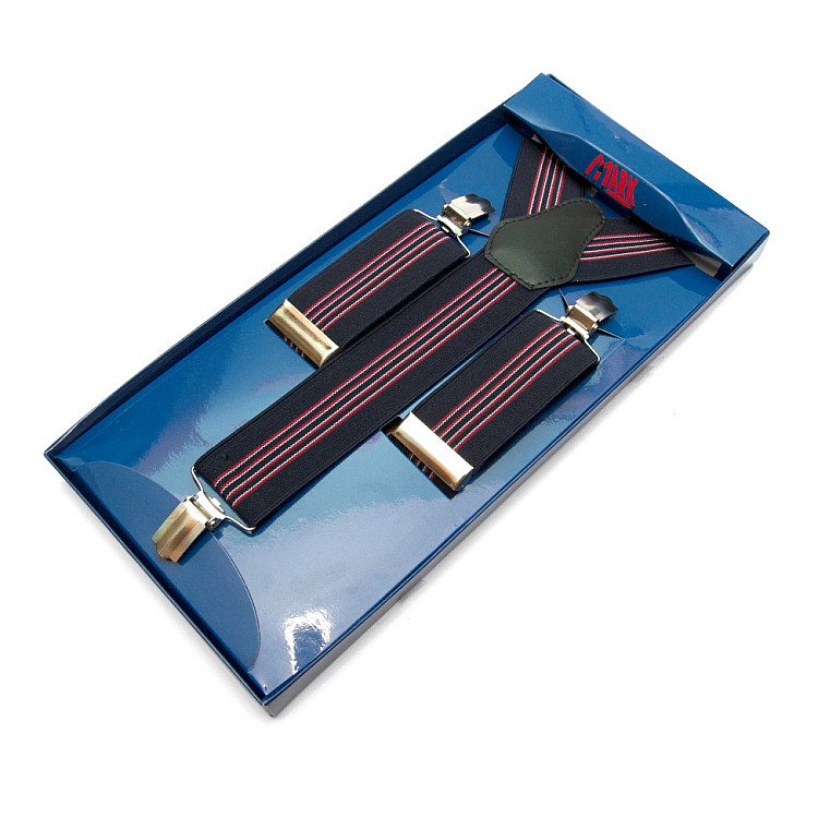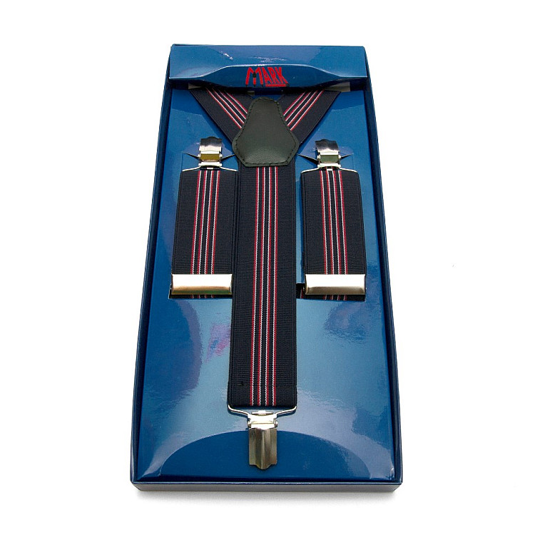 Чоловічі підтяжки Gofin Y образні темно- сині в смужки подарункові PU-0480