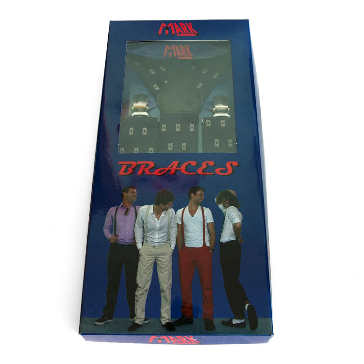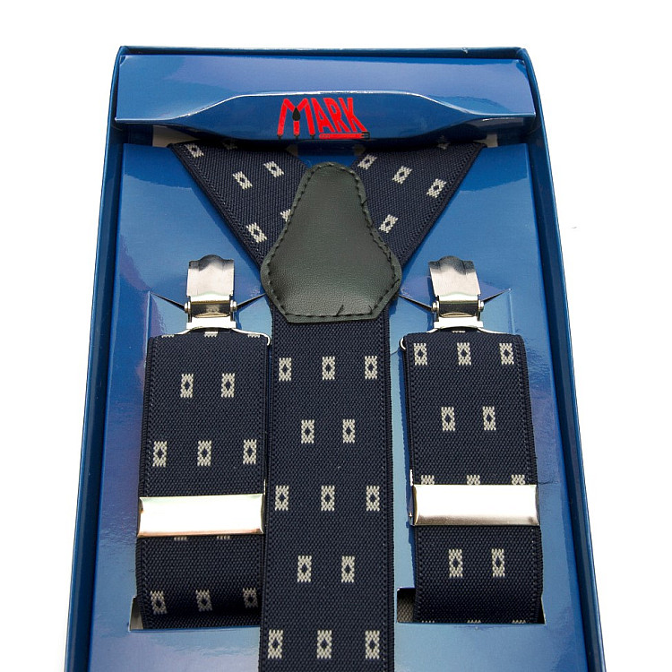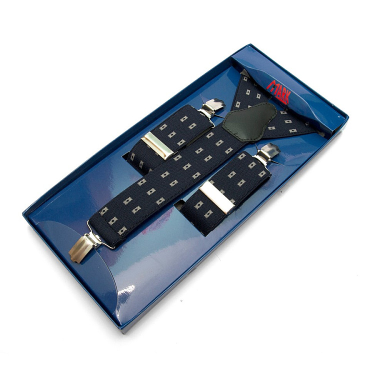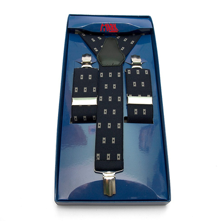 Чоловічі підтяжки Gofin Y образні темно-сині з бежевими квадратиками подарункові PU-0493