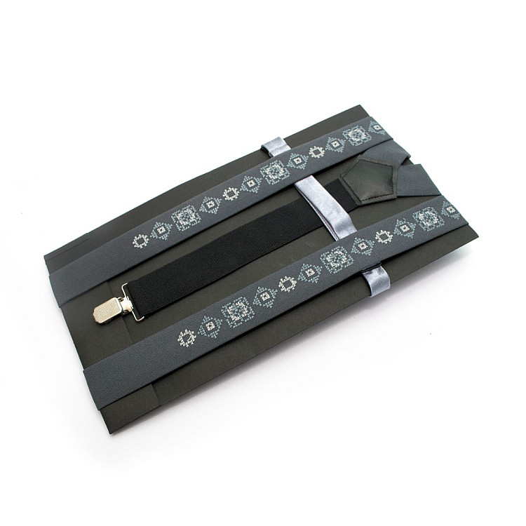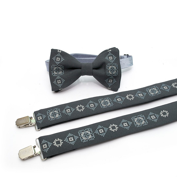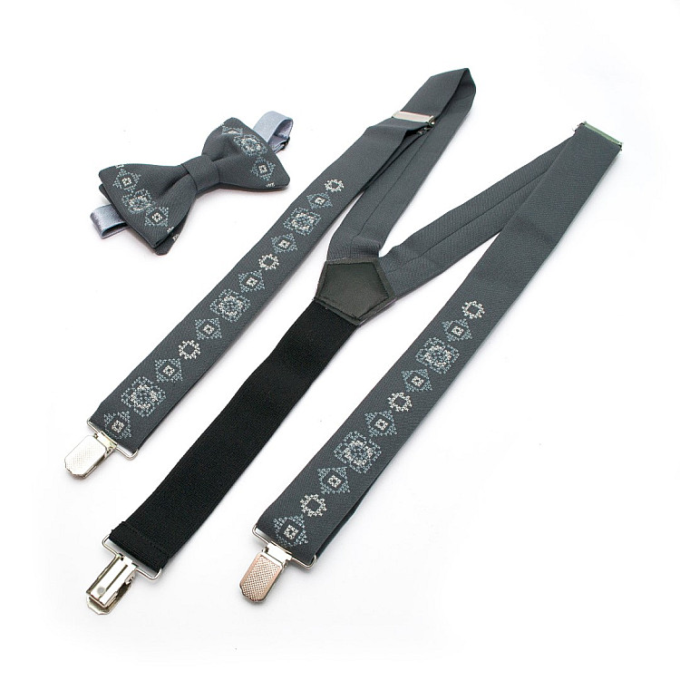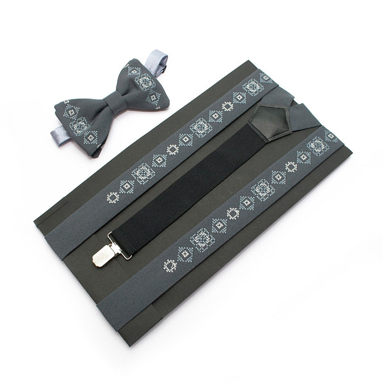 Сірий набір вишиті підтяжки в наборі з метеликом NR-3722