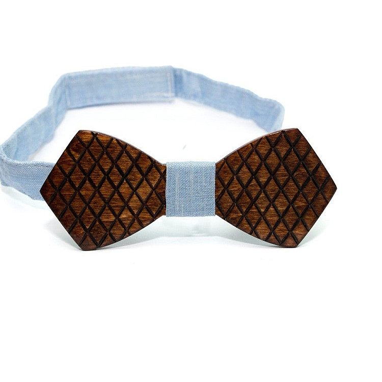 Дерев'яна краватка метелик Gofin в ромбіки темна GBDH-8104