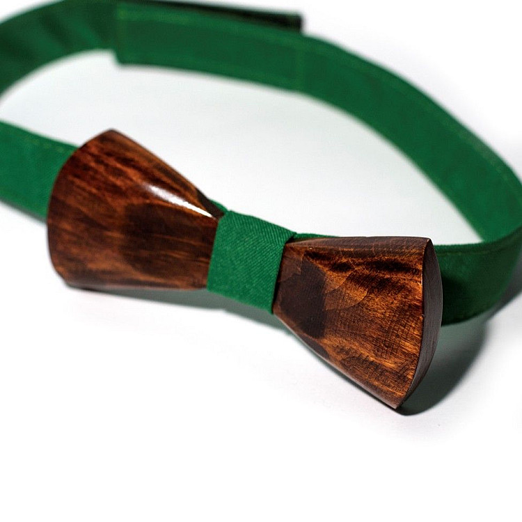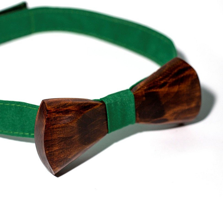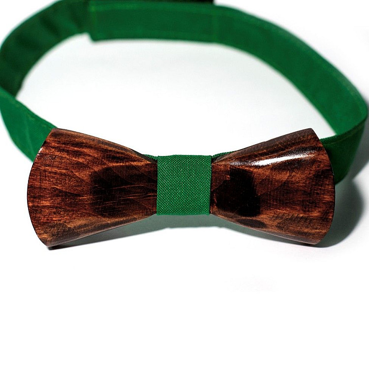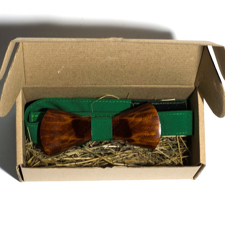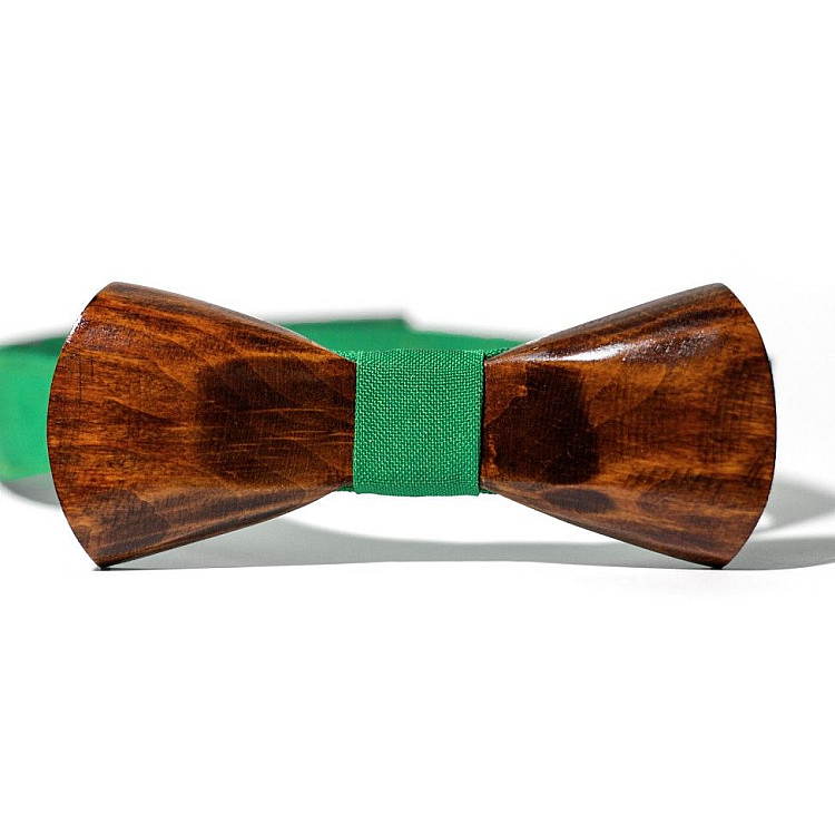 Дерев'яний краватка метелик Gofin об’ємний з зеленою тканиною GBDH-8042