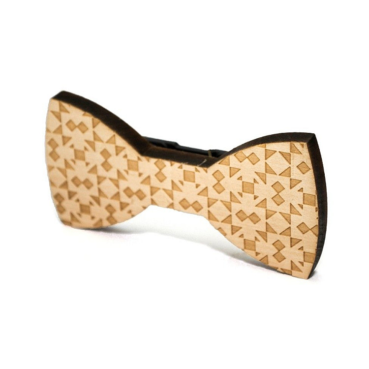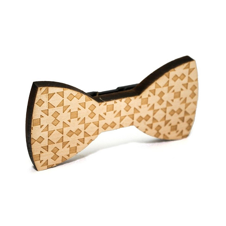 Деревяний краватка метелик з трикутниками і ромбіками GBDK-5002