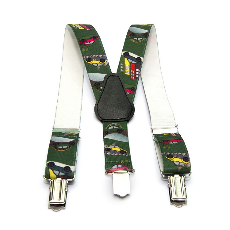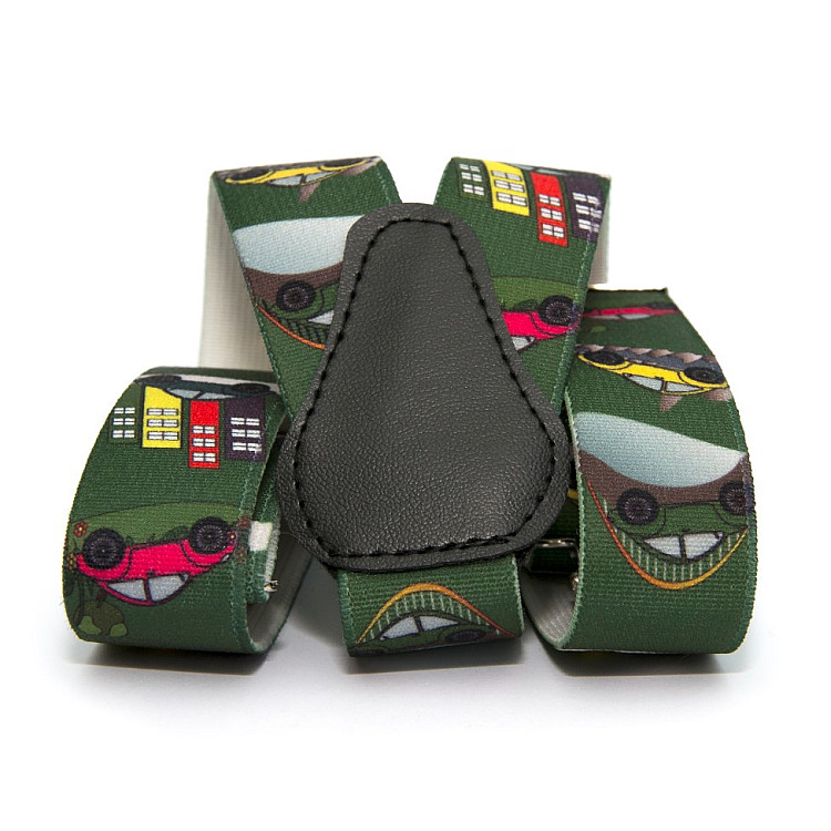 Дитячі темно-зелені підтяжки Gofin з машинками PBD-15005