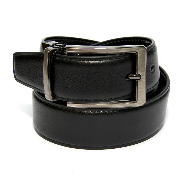 Двосторонній чорний шкіряний ремінь Z-350770