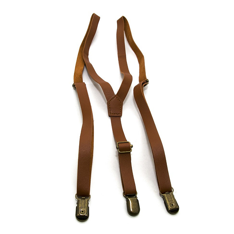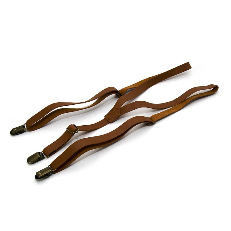 Еко шкіряні підтяжки Gofin вузькі світло-коричневі 1,5 см PBK-33001