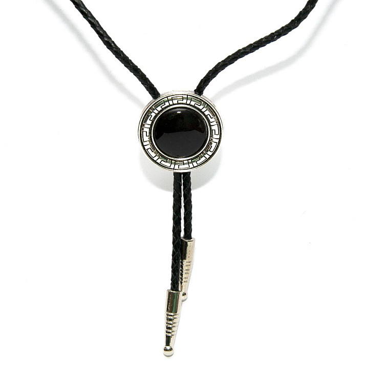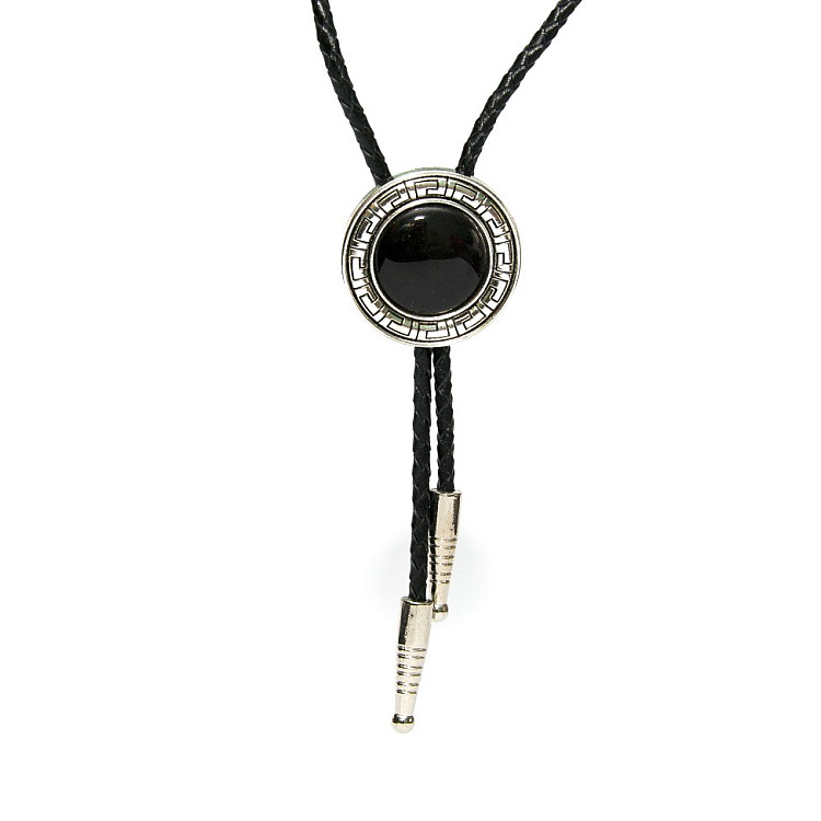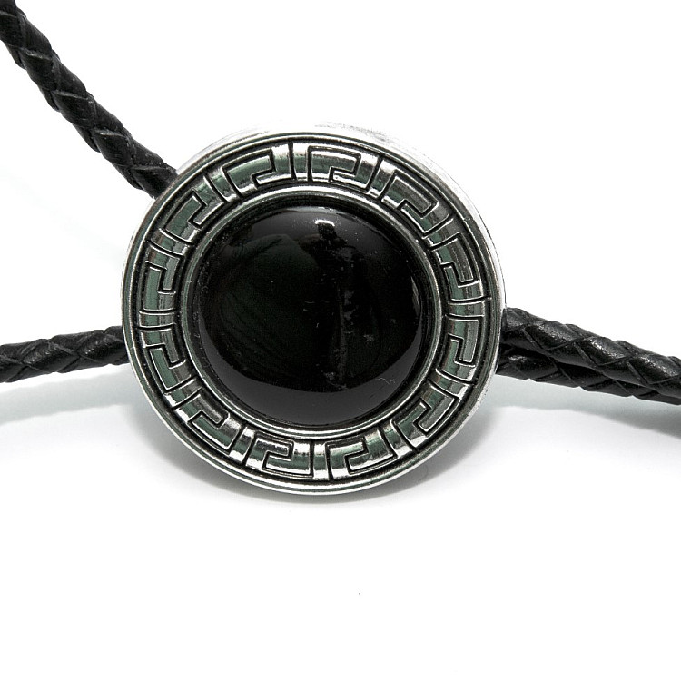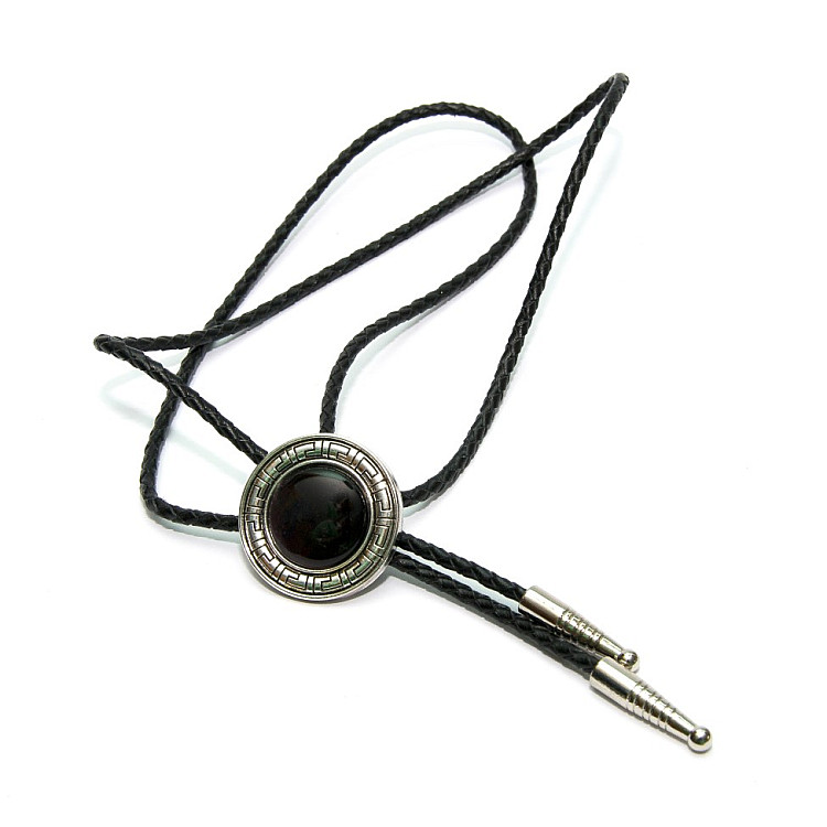 Краватка боло Gofin круглий з чорним каменем BOLO-52058