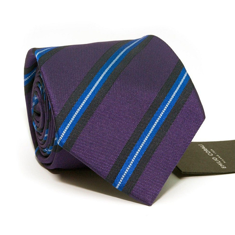 Краватка Фіолетова з синіми смужками Emilio Corali GIN-2315
