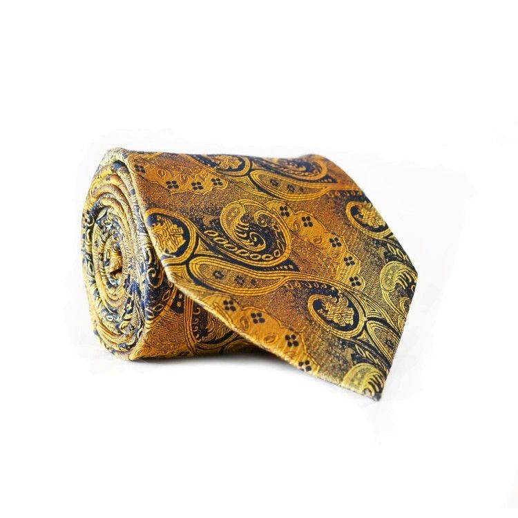 Краватка Emilio Corali чоловіча золота з синім візерунком (турецький огірок-пейслі) GIN-2038