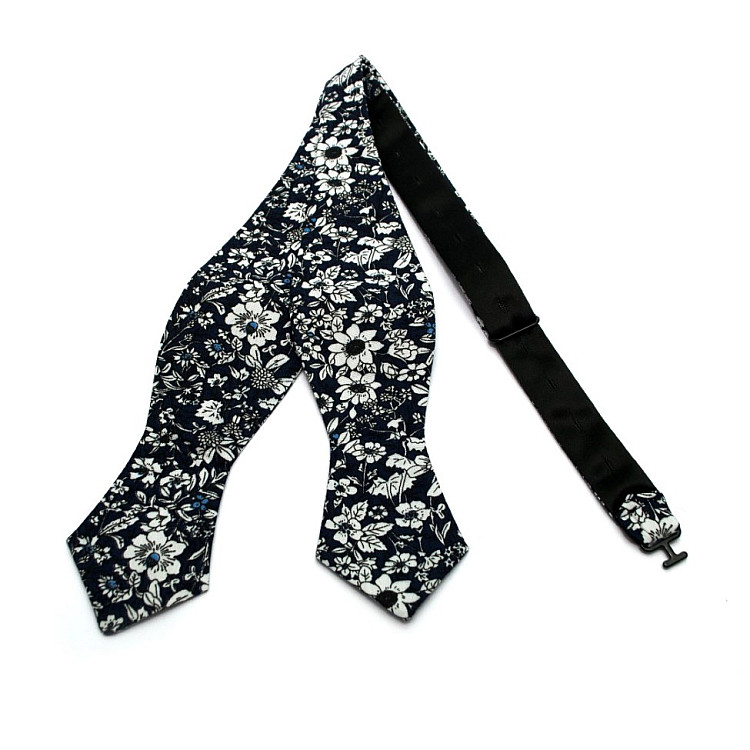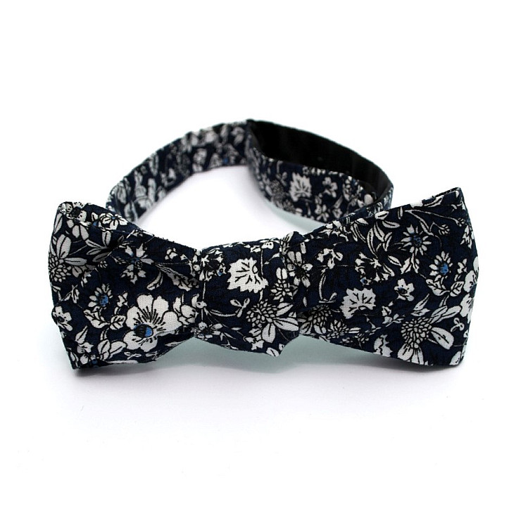 Краватка метелик самовяз діамант синій з квітами GBS-7400