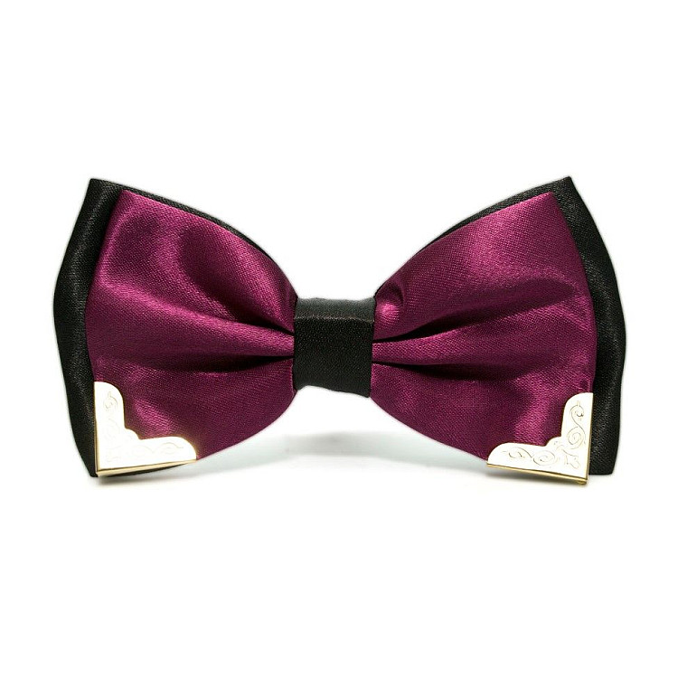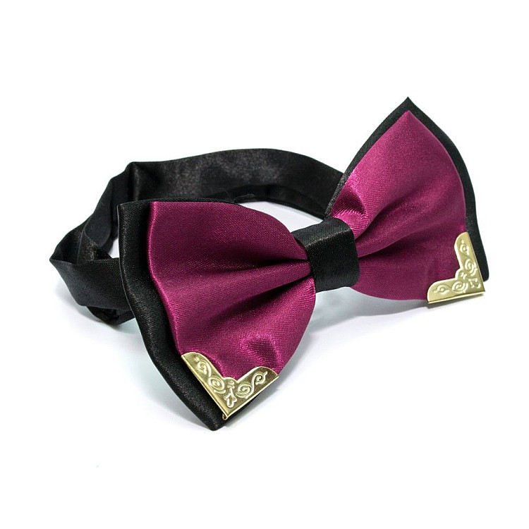 Краватка метелик двошаровий баклажановий з металевими кутами Bj-7718