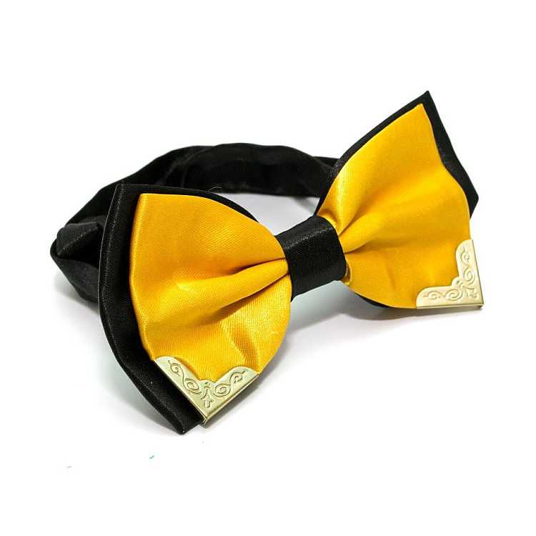 Краватка метелик двошаровий жовтий з металевими кутами Bj-7708