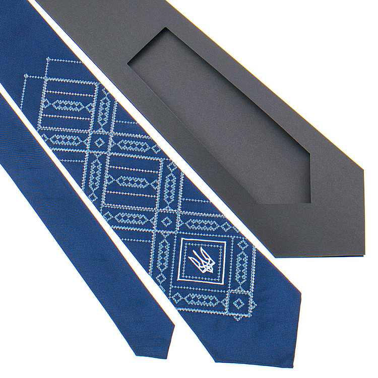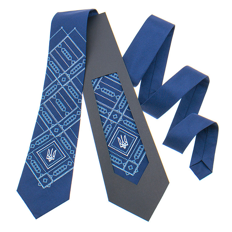 Краватка з вишивкою синя з тризубом № 822 LN-2120