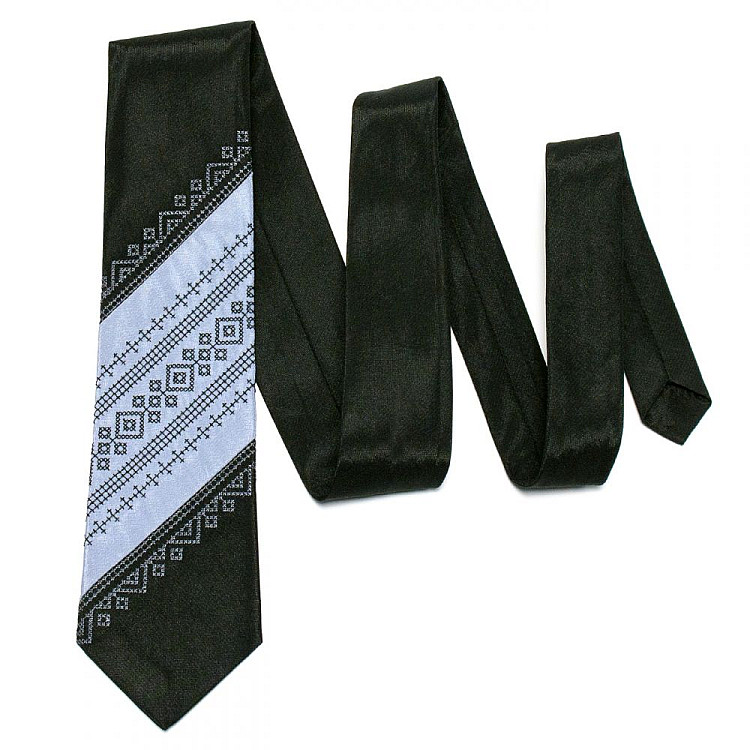 Краватка з вишивкою сіро-чорна №645 LN-2048