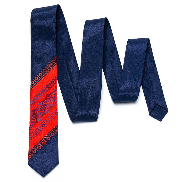 Краватка вузька червоно-синя з вишивкою №659 LN-2043