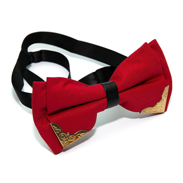 Краватка метелик двошарова Червона з металевими кутами Bj-44-21