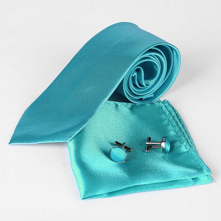 Бірюзовий набір Gofin краватка 8 см, хустинка, запонки GZL-3620