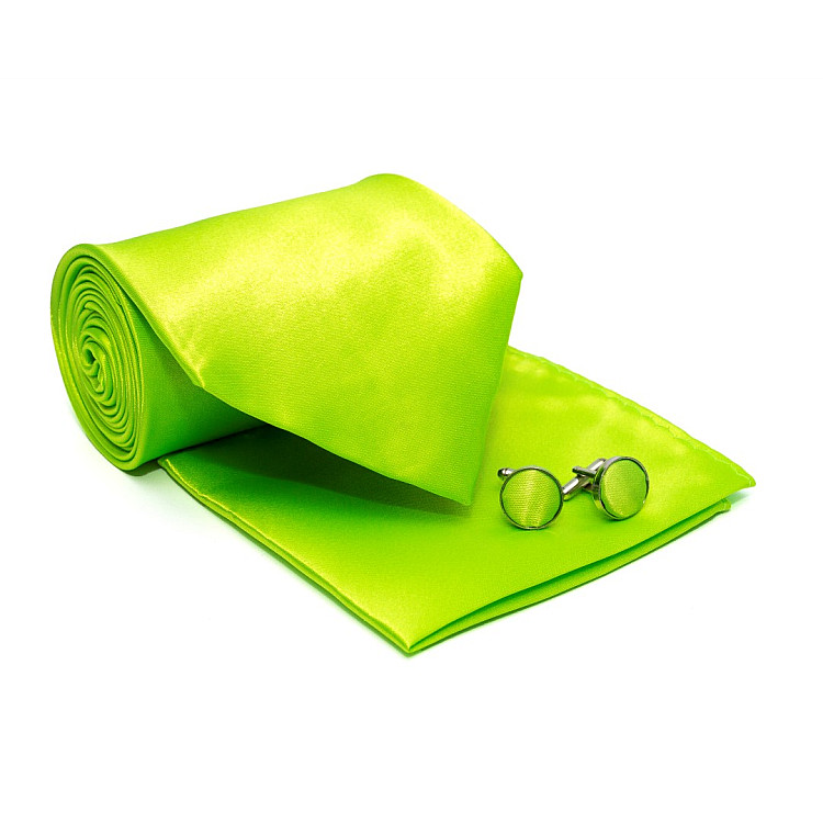 Набір салатовий 3в1, краватка, хустинка, запонки GZN-6307