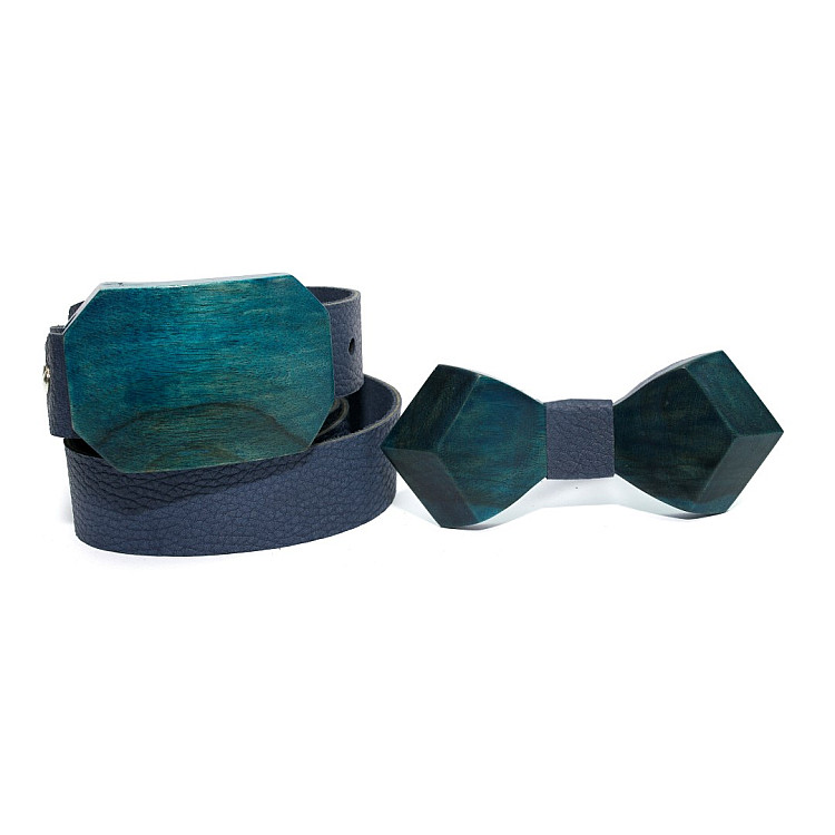 Набір синій ремінь з дерев’яною пряжкою плюс метелик Gofin RDB-3912