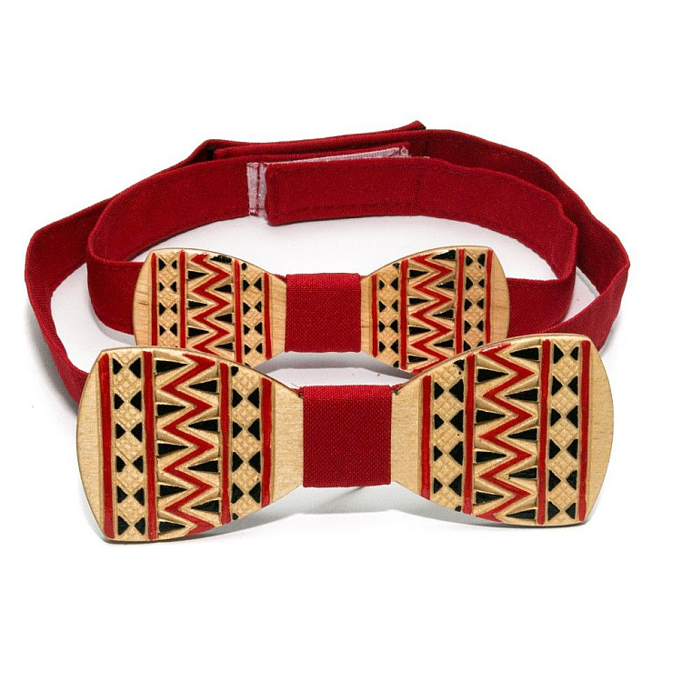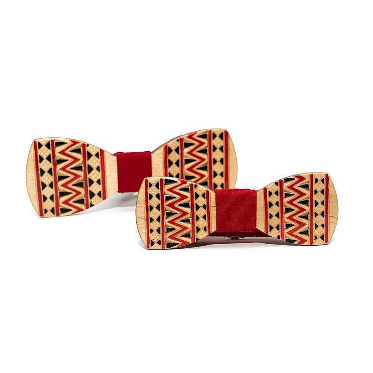 Дерев'яні метелики дозволяють грати на контрасті, якщо основа і поясок - різного відтінку. Основа може зберігати оригінальну дерев'яну текстуру і колір, також на неї наносять фарбу і навіть вишиванку!
