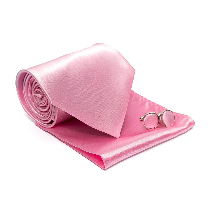 Набір рожевий 3в1, краватка, хустинка, запонки GZN-6310