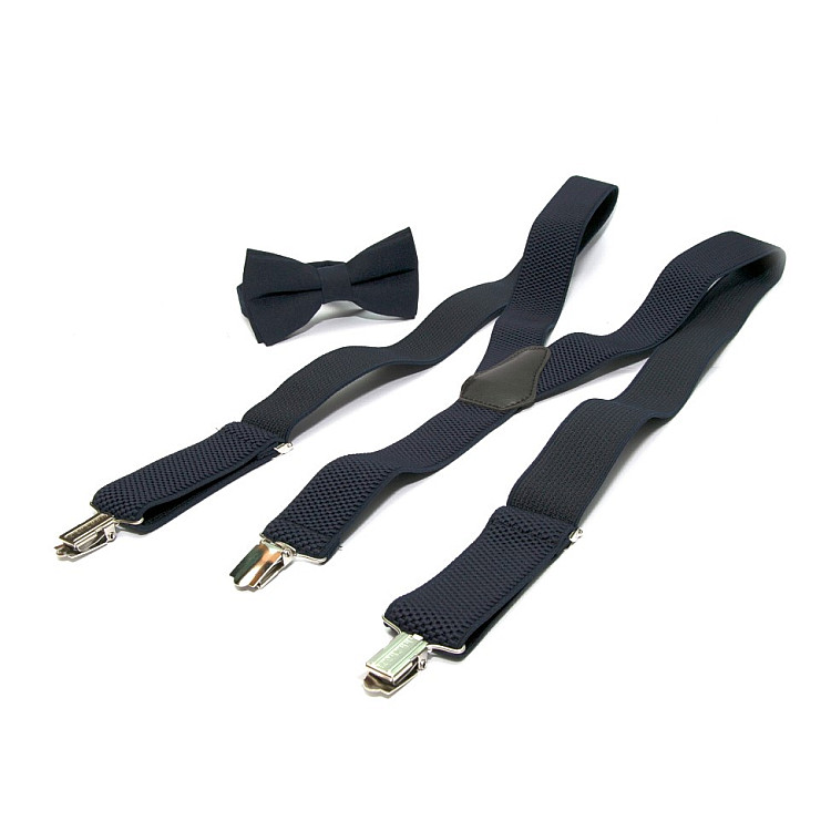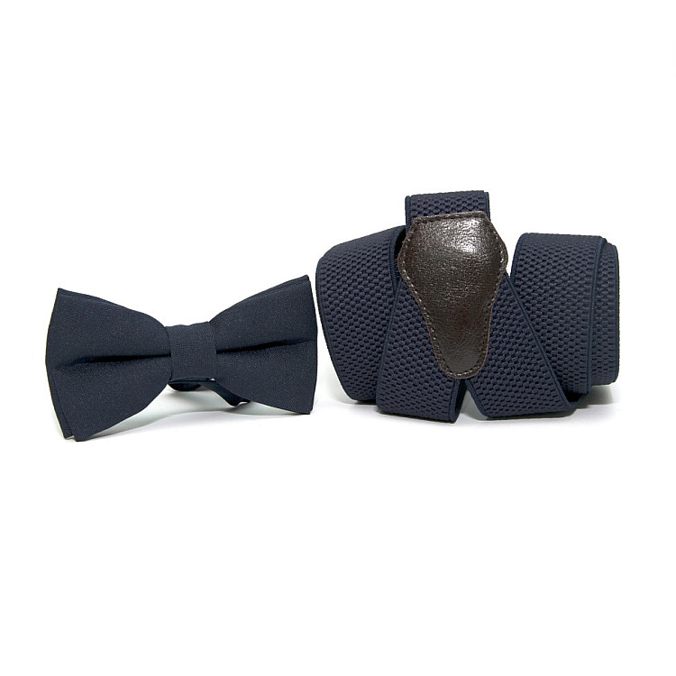 Однотонний дизайн: Цей набір має однаковий темно-синій колір, що дозволяє легко поєднувати підтяжки і метелика з різними образами і одягом.