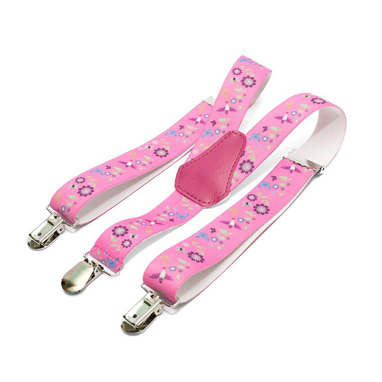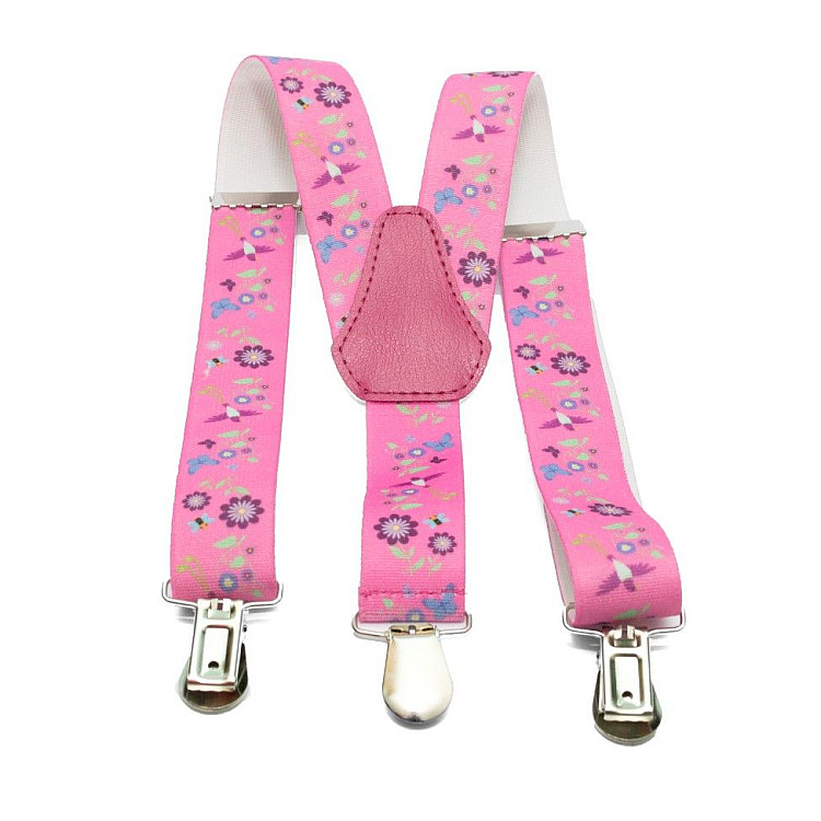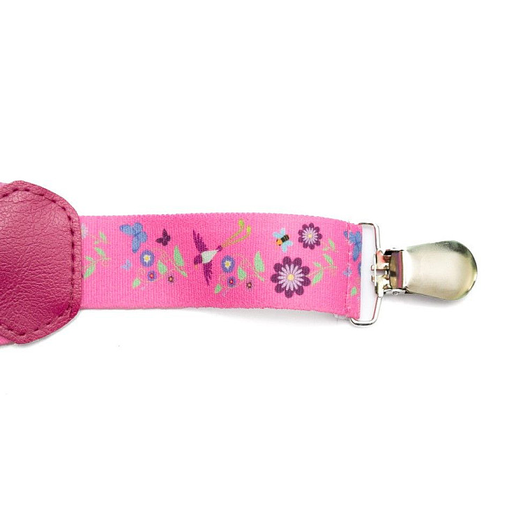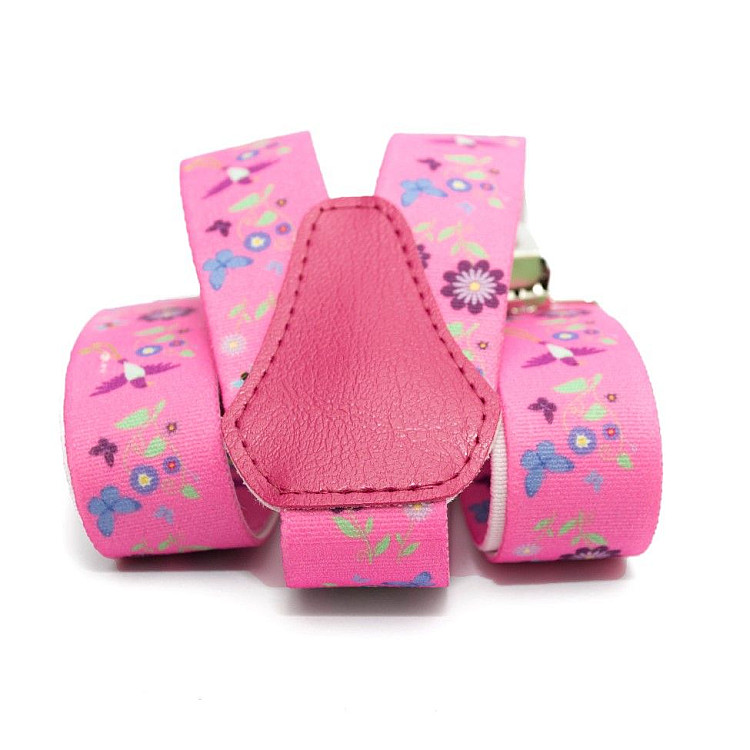 Підтяжки Gofin дитячі рожеві з квітами-пташками PBD-063