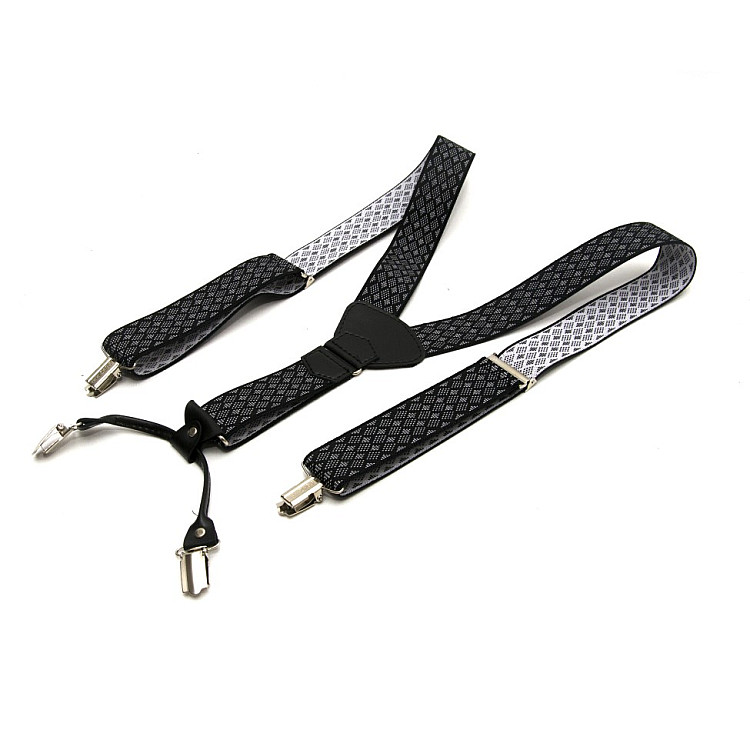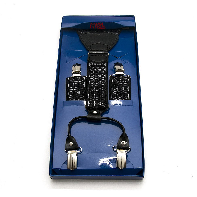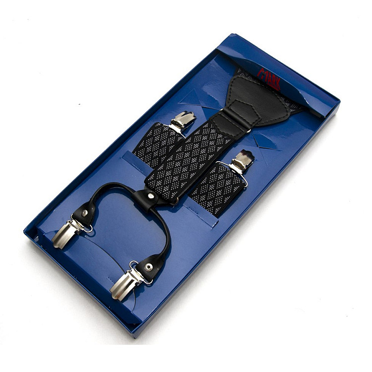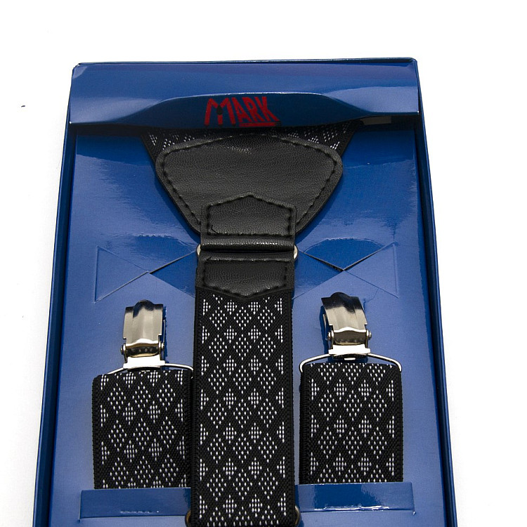 Підтяжки Gofin подарункові чорні в ромбіки Y образні PU-0506