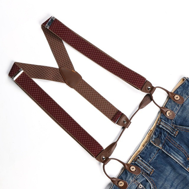 Запитайте AI як краще поєднати Підтяжки на гудзик бордові в ромбіки PNP-5822 з вашим образом