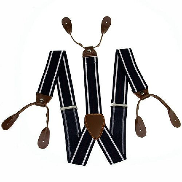 Запитайте AI як краще поєднати Підтяжки на гудзик темно-сині в смужку PNP-5820 з вашим образом