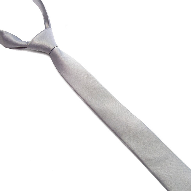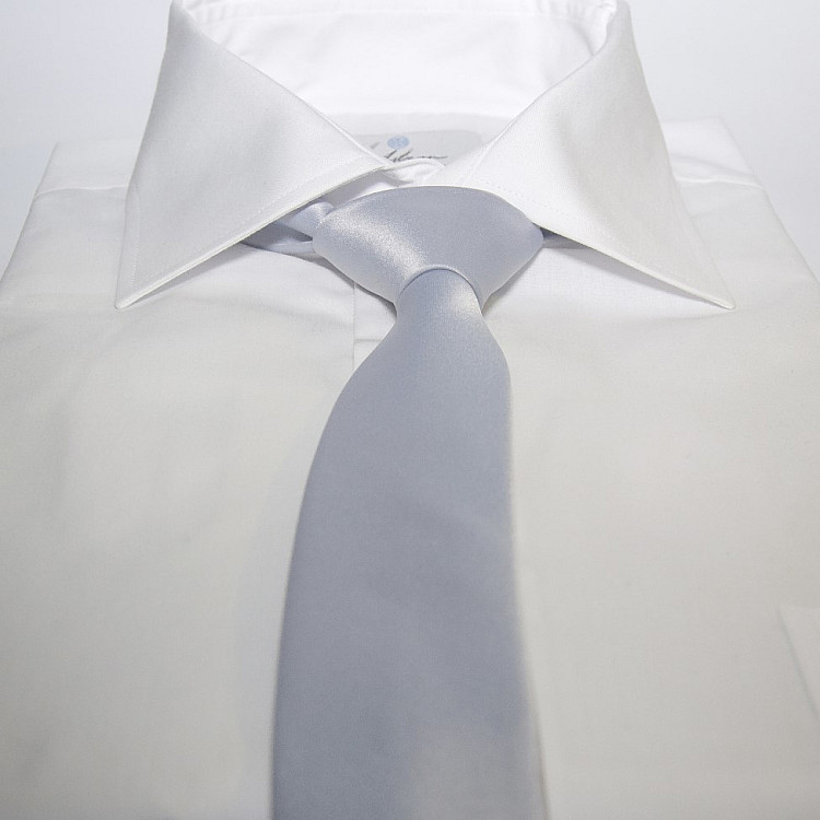 Светло-серый сатиновый галстук Gofin узкий однотонный с голубым оттенком FGS-21001