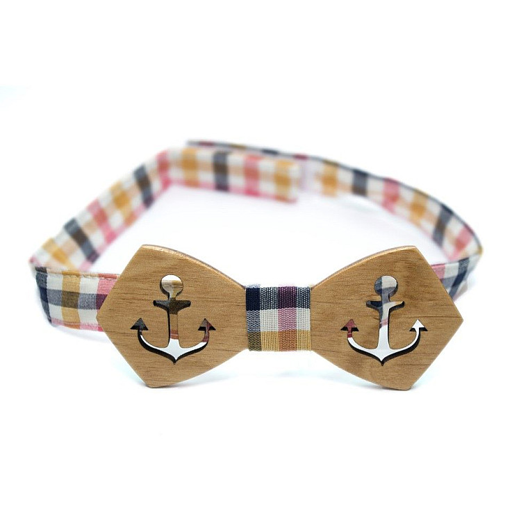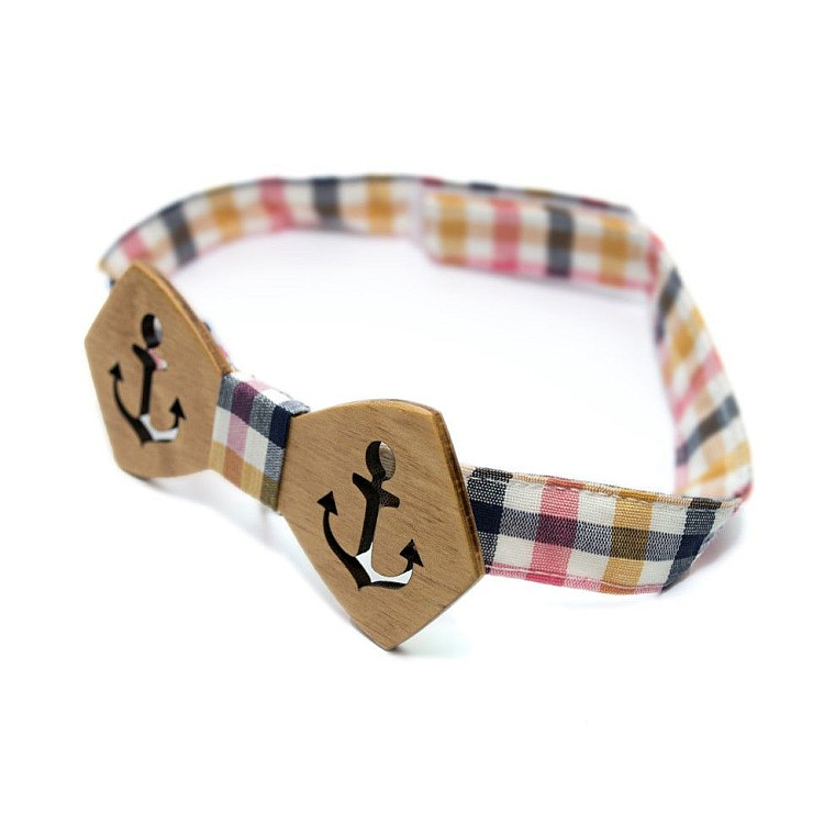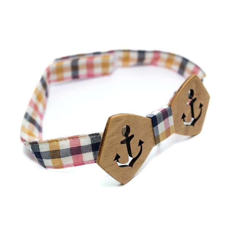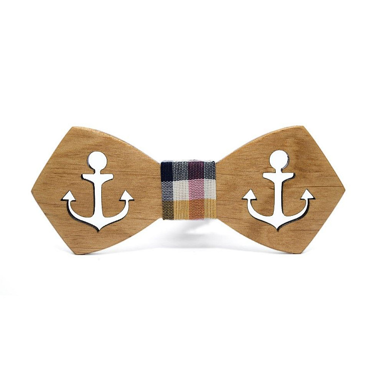 Деревянная бабочка Gofin с вырезанным якорем GBDH-8167