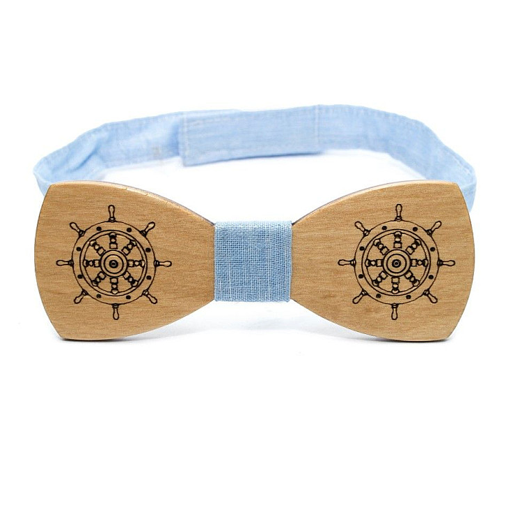 Деревянная галстук бабочка Gofin с гравировкой штурвала GBDH-8199