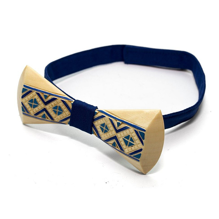 Деревянная галстук бабочка Gofin синяя с рисунком вышивка GBDH-8332