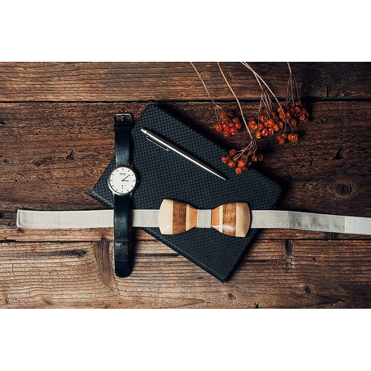 Спросите AI как лучше соединить Деревянная галстук бабочка Gofin объемная светлая-темная в полоску GBDH-8004 с вашим образом