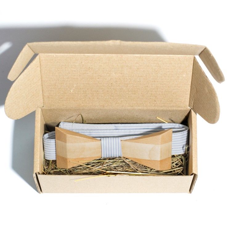 Спросите AI как лучше соединить Деревянная галстук бабочка Gofin триугольная в полоску GBDH-8016 с вашим образом