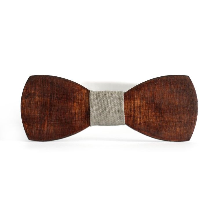 Деревянная галстук бабочка Gofin класическая темная с серой тканью GBDH-8018