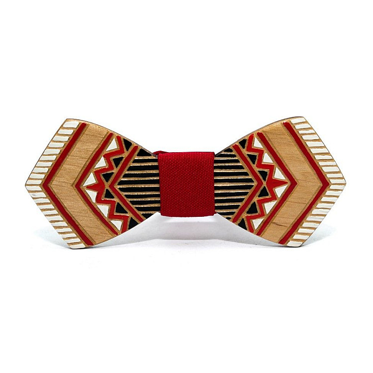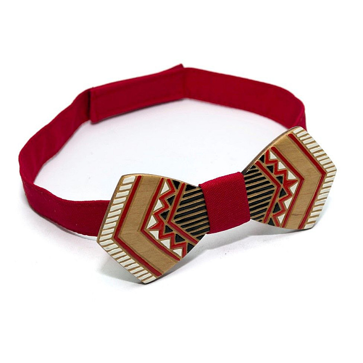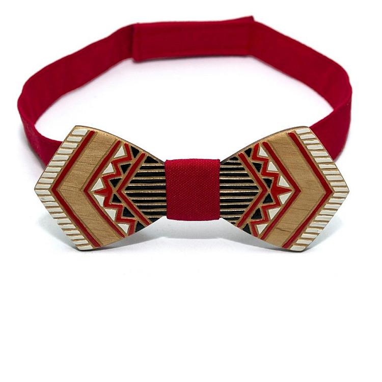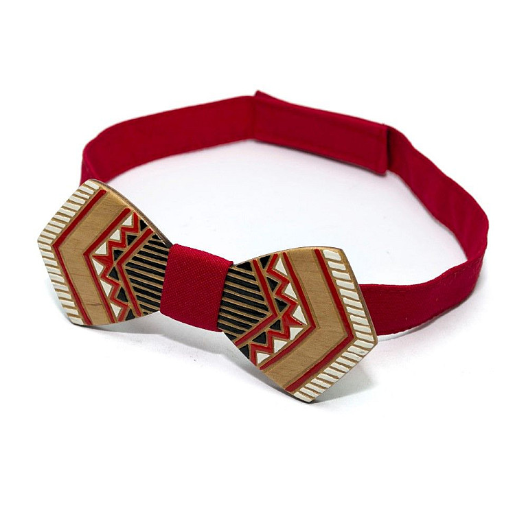 Деревянная галстук-бабочка Gofin плоская с красным рисунком GBDH-8340