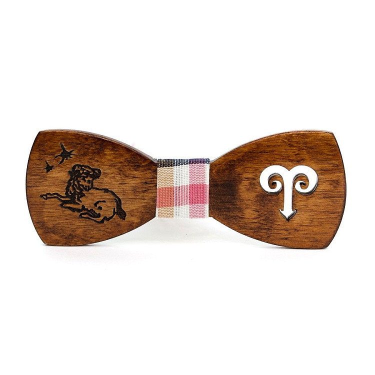 Деревянная галстук бабочка Gofin темная знак зодиака овен GBDH-8294