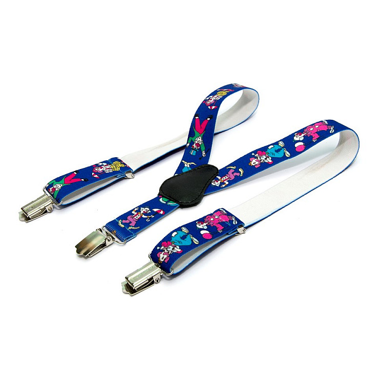 Детские Подтяжки Gofin синего цвета с клоунами PBD-082
