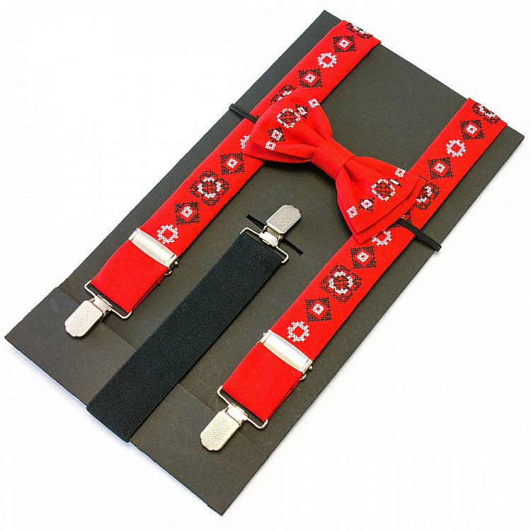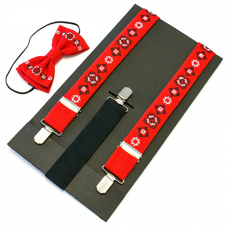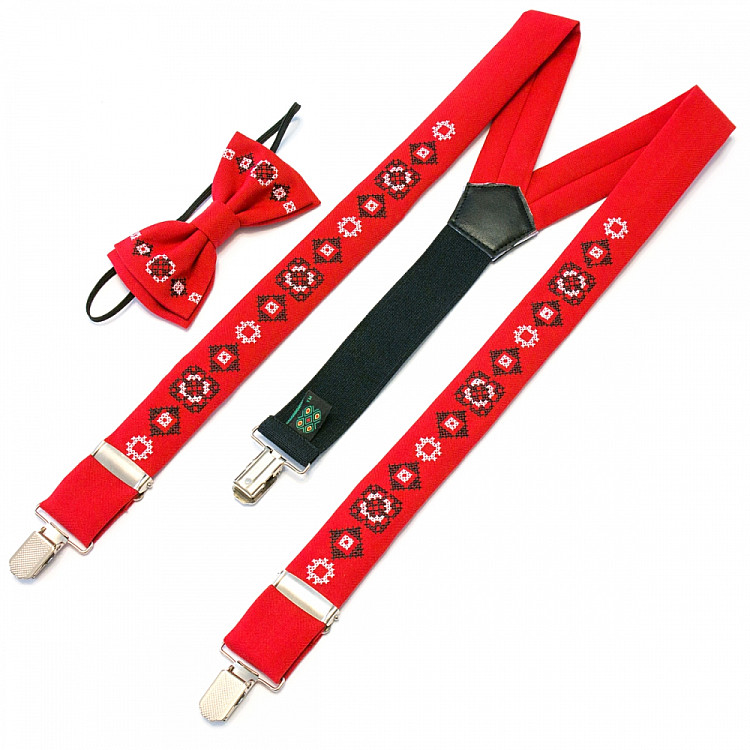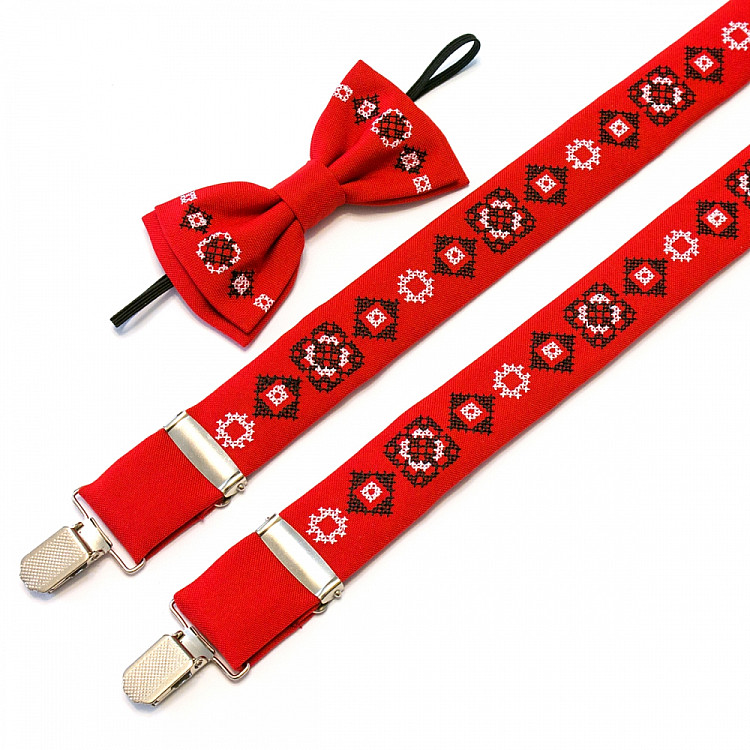 Детские вышитые подтяжки с бабочкой Красные NR-3706