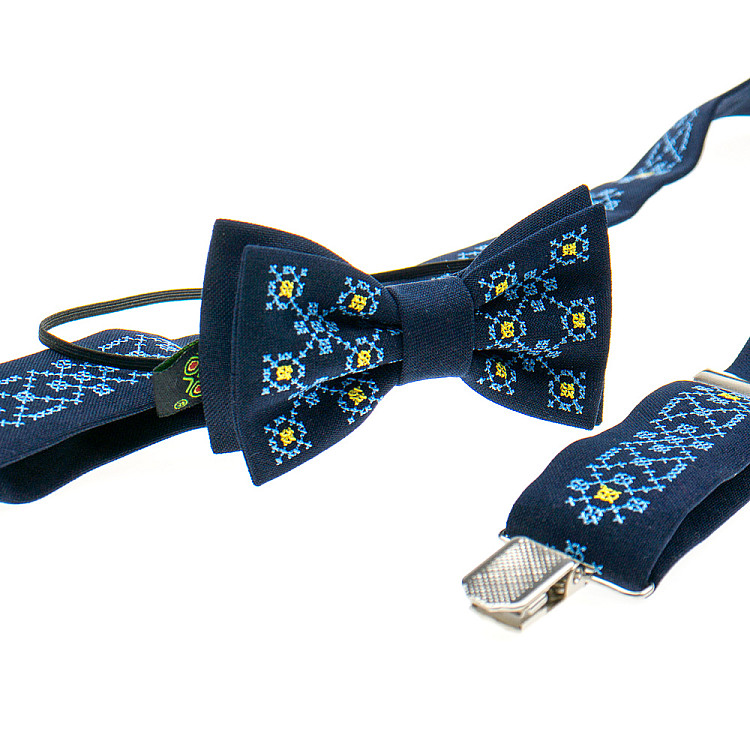 Детские вышитые подтяжки № 869 темно-синие с бабочкой NR-3731