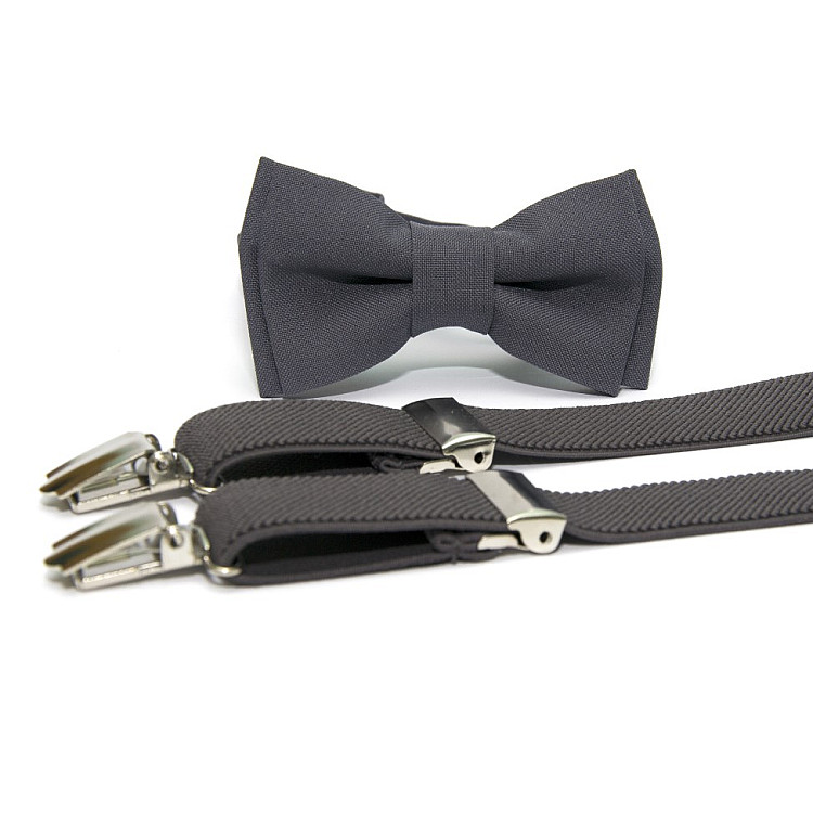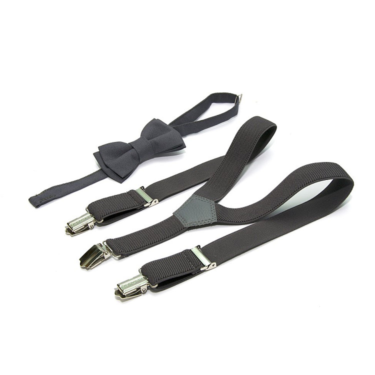 Спросите AI как лучше соединить Детский набор Gofin темно-серый однотонный подтяжки и бабочка ABD-14009 с вашим образом
