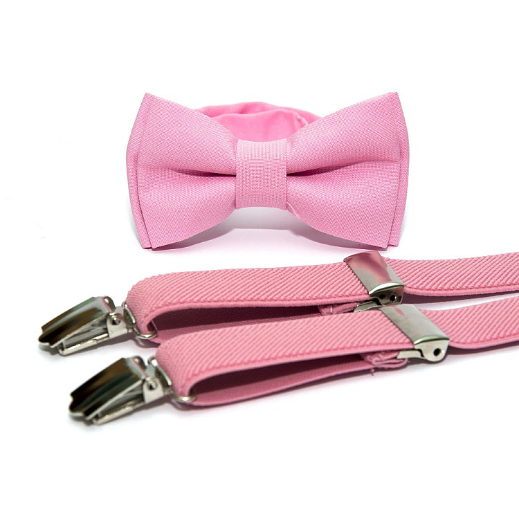 Детский набор из бабочки и подтяжек однотонный, подходит к костюмам и рубашкам. Выбирайте любой цвет – от классического черного до нежных сиреневого и розового.