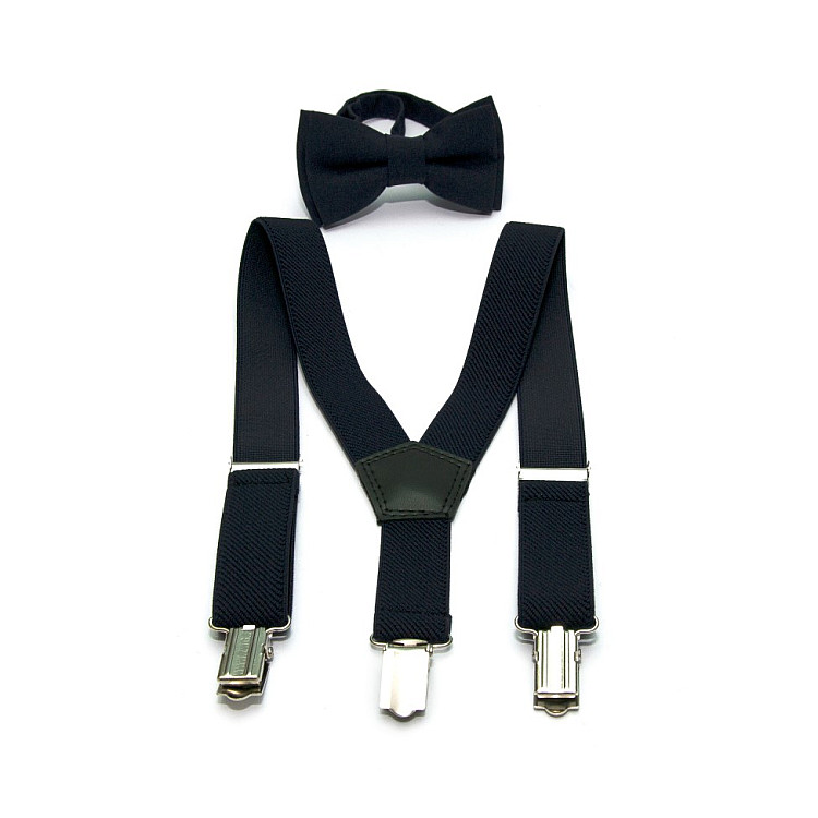 Бабочка в комплекте идет уже готовая – купите набор и забудьте о проблемах повязывания галстука. Подтяжки надежно поддержат штаны, не передавливая живот. Ребенок будет свободно двигаться и отлично себя чувствовать.