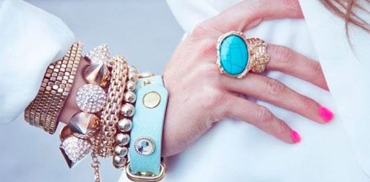Хорошая идея — комбинировать украшения, сходные по 1-2 признакам, а по остальным отличающиеся. Например, несколько тонких металлических браслетов разного цвета и с разным декором. Выбирайте анималистические, фантазийные, геометрические и футуристические мотивы.