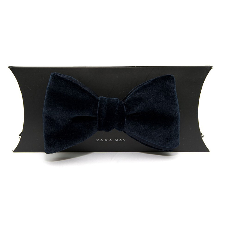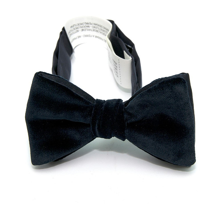Елитная бархатная галстук бабочка Zara темно-синяя BZR-9008