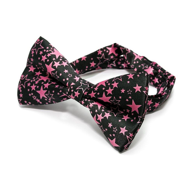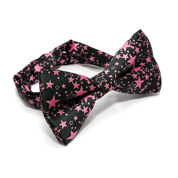 Галстук бабочка черная с розовыми звездочками BTM-1314